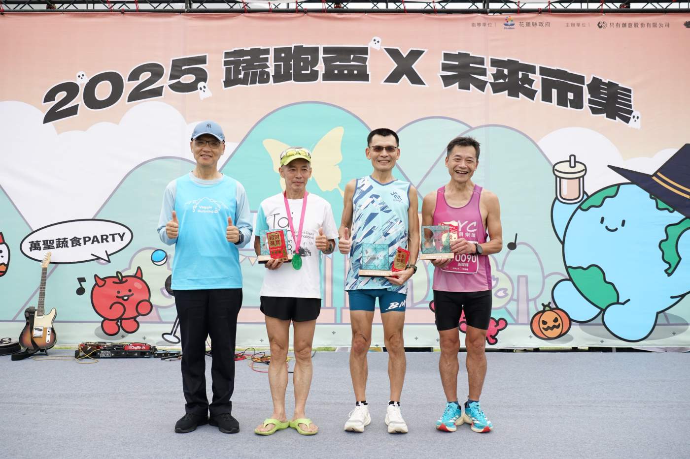 楊子儀分享自己茹素8年的經驗,呼籲大家關注環保與永續,希望大家跑完步後,也能到蔬食市集補充能量,感受綠色生活的美好;羅維銘則以60歲以上組世界紀錄保持人的身分參與21K賽程,將每一步獻給花蓮。