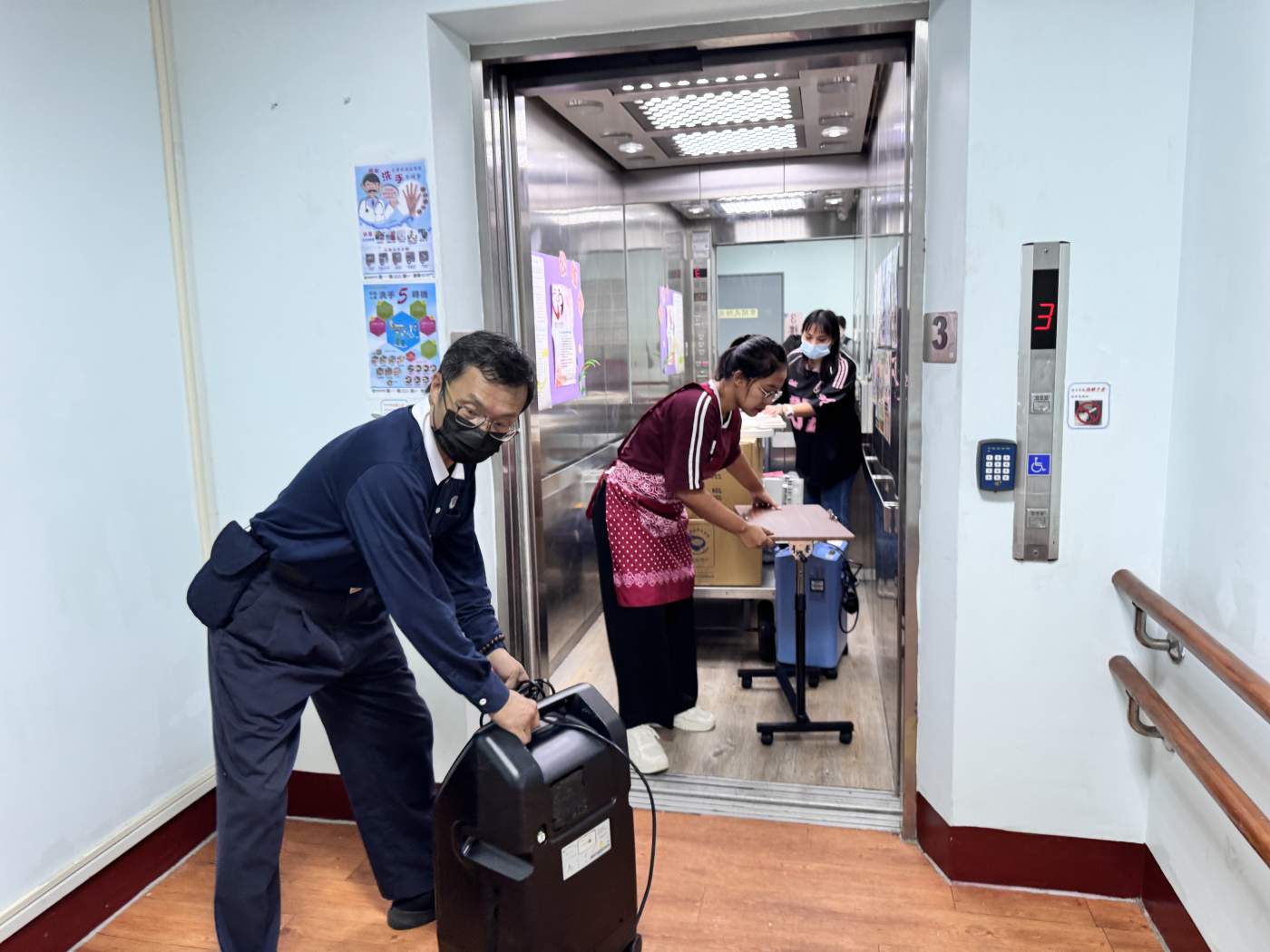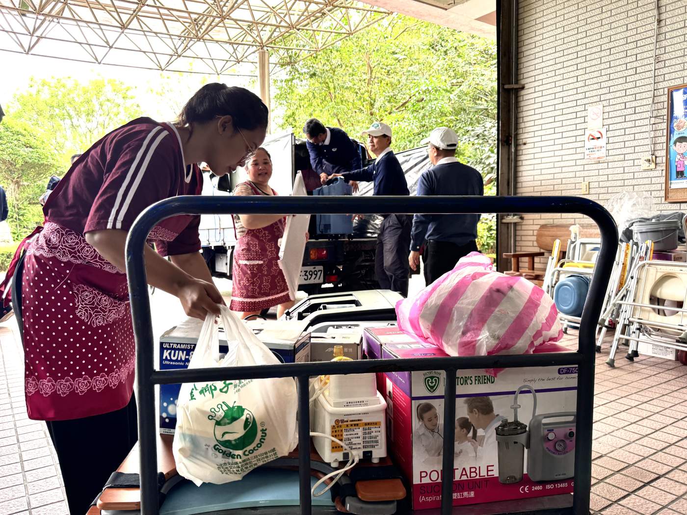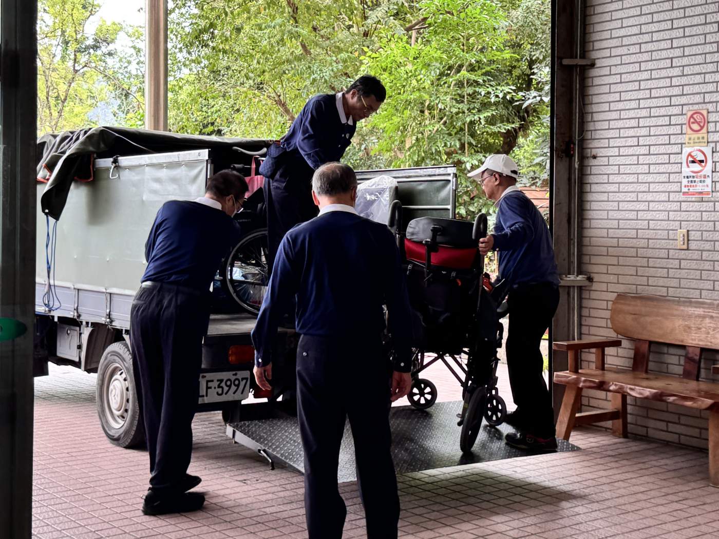 慈濟志工團隊自10月13日、16日及11月5日三度送來輔具,包括電動移位機、抽痰機、製氧機、氣墊床、洗澡躺椅、消毒鍋、高背輪椅、電動輪椅及各式餐桌與座墊等。11月5日清晨,6位志工自雙北出發,送達後與長者互動並呈現手語歌,傳遞溫暖與關懷。