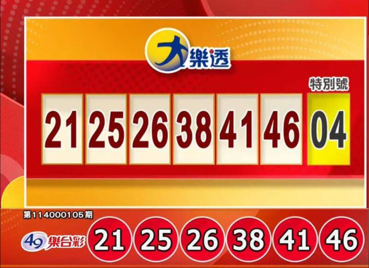 今晚(11月14日)的大樂透頭獎獎金高達6.91億元,吸引全台彩迷屏息以待。最終由花蓮市民生里公園路的「積財庫彩券行」開出,一注獨得、沒有共有人,扣稅後實領近5.5億元。14日開獎大樂透獎號:21、25、26、38、41、46,特別號:04。(圖片/全民i彩券)