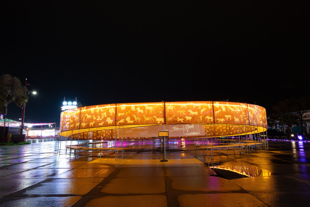 花蓮太平洋燈會今天晚間開幕,由建築藝術家鄭乘騏領軍,主燈不走傳統生肖造型,以疊石、北回歸線等意象結合精密金屬,3分鐘的主燈展演,成為會呼吸的奇蹟之塔,第二、三層的旋轉木馬及群馬奔騰動畫隨音樂律動。縣長徐榛蔚在致詞時提到,這場燈會是「獻給土地的策展」,希望透過光影展現馬年的活力。今年燈會由專業建築藝術團隊打造「戶外美術館」概念,跳脫傳統生肖花燈造型,是希望能結合在地山海文化進行美學突破。