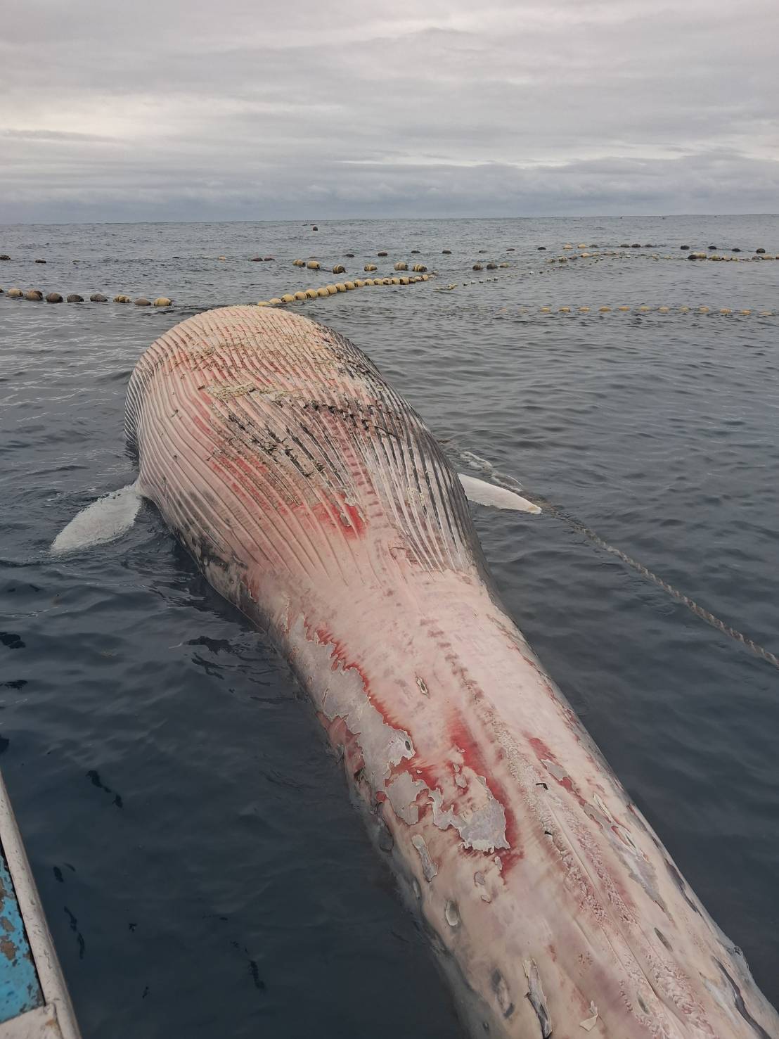 現場目擊顯示,巨鯨腹部密集的喉部腹褶清晰可見,顯示其為鬚鯨科物種。由於鯨魚屍體體積極大,對定置漁場的網具造成壓力,相關單位密切觀察。長鬚鯨是僅次於藍鯨的世界第二大生物,其屍體具有極高的研究價值,但由於體內積聚大量腐敗氣體,處理過程需嚴防「鯨爆」風險,呼籲民眾暫勿靠近。