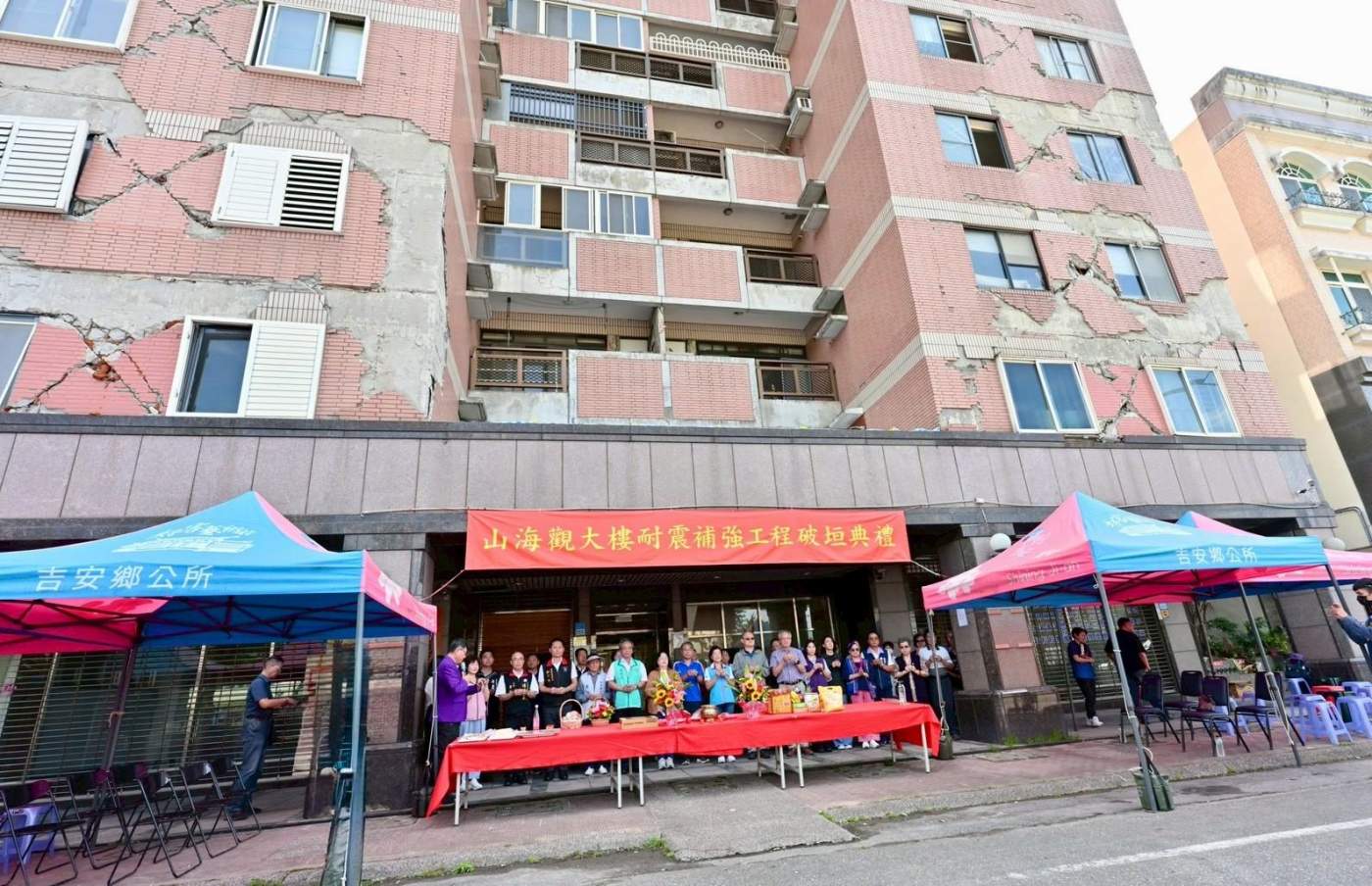 歷經 0403 強震衝擊將屆滿兩週年,吉安鄉指標建築「山海觀大樓」的重建工作終於迎來關鍵突破。管理委員會與施工團隊於今(29)日上午舉行「耐震補強工程破垣典禮」,象徵家園修復工程正式全面啟動,成為花蓮震後復原進程中的重要里程碑。在縣長徐榛蔚、吉安鄉長游淑貞及多位民意代表的共同見證下,全體與會人員虔誠祭祀,祈求工程期間人員平安、進度順利,讓住戶能早日揮別災後陰霾。