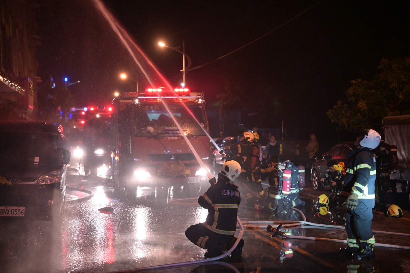 花蓮市富強路與裕民路交叉口一棟三層樓建築物,於今(3)日晚間九時許驚傳火警,建築頂樓突竄出大量濃煙,引起附近民眾驚慌並緊急報案。花蓮縣消防局於晚間九點零九分接獲通報後,火速派遣鄰近多個消防分隊車組趕赴現場,消防人員抵達後立即佈署水線展開灌救。