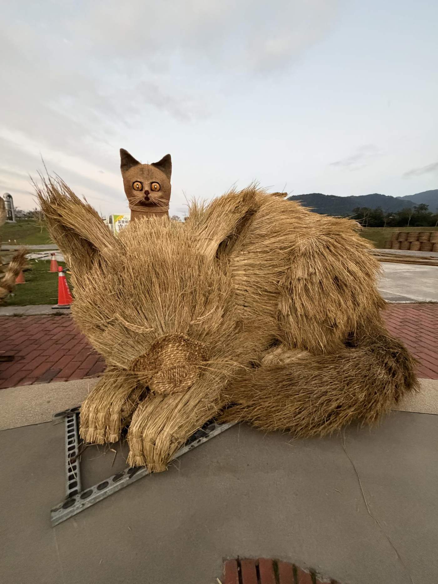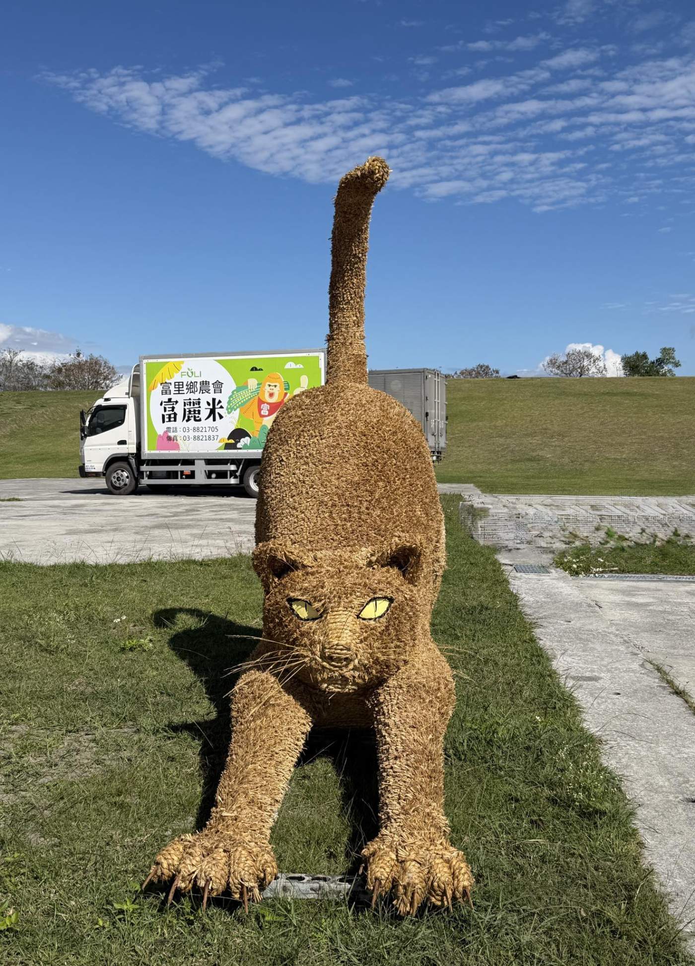 翻攝/富里鄉農會總幹事張素華臉書。展覽以「貓」為創意主軸,串聯藝術創作、農村景觀與地方故事,集結在地藝術家、青年創作者與農村職人共同參與。展出內容包括大型稻草藝術、竹編創作,以及由敖幼祥老師團隊設計的漂流米貓造型作品,並有社區與學校的十九件創作。田園景觀被轉化為藝術展示空間,設置稻草貓雕塑、貓咪稻草迷宮及農產延伸手作體驗,充分展現居民深耕土地、揮灑創意的成果。