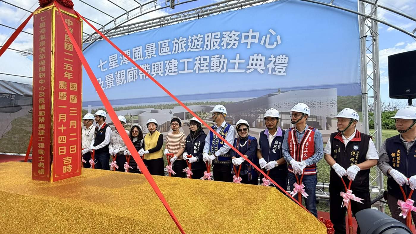 花蓮觀光地標七星潭將迎來全新門戶。備受關注的「七星潭風景區旅遊服務中心及景觀廊帶工程」於今日(2日)正式動土,由縣長徐榛蔚主持開工儀式。這項耗資約 1.86 億元的建設計畫,預計於 116 年(2027年)8 月前完工。。這座以「母子鯨魚」為造型的流動曲線建築,最大的亮點在於特別規劃了「可步行景觀屋頂」,未來旅客不僅能登高飽覽太平洋海景與中央山脈,還能近距離體驗戰機低空衝場的感官震撼,打造全台獨一無二的觀景地標。