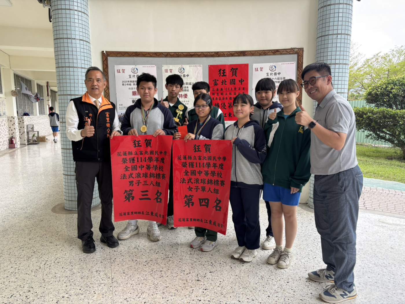 富里鄉鄉長江東成在得知捷報後,亦表達了高度的肯定與祝賀。江鄉長勉勵這群「富里之光」要持續精進自我,勇於挑戰更高的目標,並期許富北國中未來能持續培育更多優秀人才,在各項競賽中再創佳績,提升地方能見度的同時,也為花蓮與富里爭取更多榮耀。