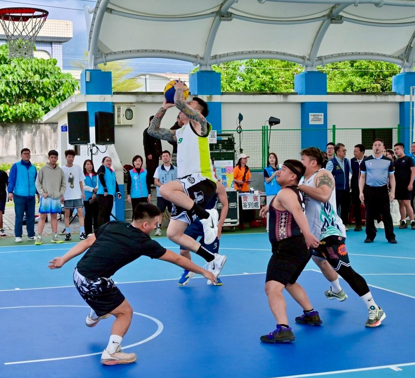 本次賽事規模更勝以往,比賽共分為公開社會男子組、公開女子組、國中組及國小組四個組別,總計有 80 餘支隊伍、超過 300 位球員與親友加油團湧入現場,讓球場熱氣騰騰,游鄉長逐一為選手打氣。現場包括年僅 18 歲、身高達 192 公分的泰山高中好手郭承澔,其身高優勢成為全場矚目焦點;此外,來自宜蘭的「親子」隊由熱愛籃球的父親帶著國中小校隊兒女參賽,雖然最終未奪得名次,但全家人享受比賽的精神贏得了現場最響亮的喝采。