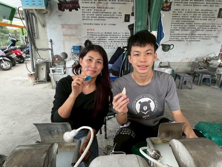 活動在專業工藝師鍾翔和的引導下揭開序幕,參與的家庭首先透過導覽解說,深入了解花蓮玉石的種類與地質形成背景,並實地體驗採石過程,從源頭認識材料的自然特性。隨後進入最受期待的磨玉 DIY 與加工課程,在專業指導與親子的合力協助下,一顆顆粗糙的原石經過砂輪磨製、拋光與精細的編織加工,轉化為獨一無二的專屬玉飾,同時也成為更象徵著親子間跨越代溝的合作與溝通,成為家庭共同擁有的珍貴記憶。
