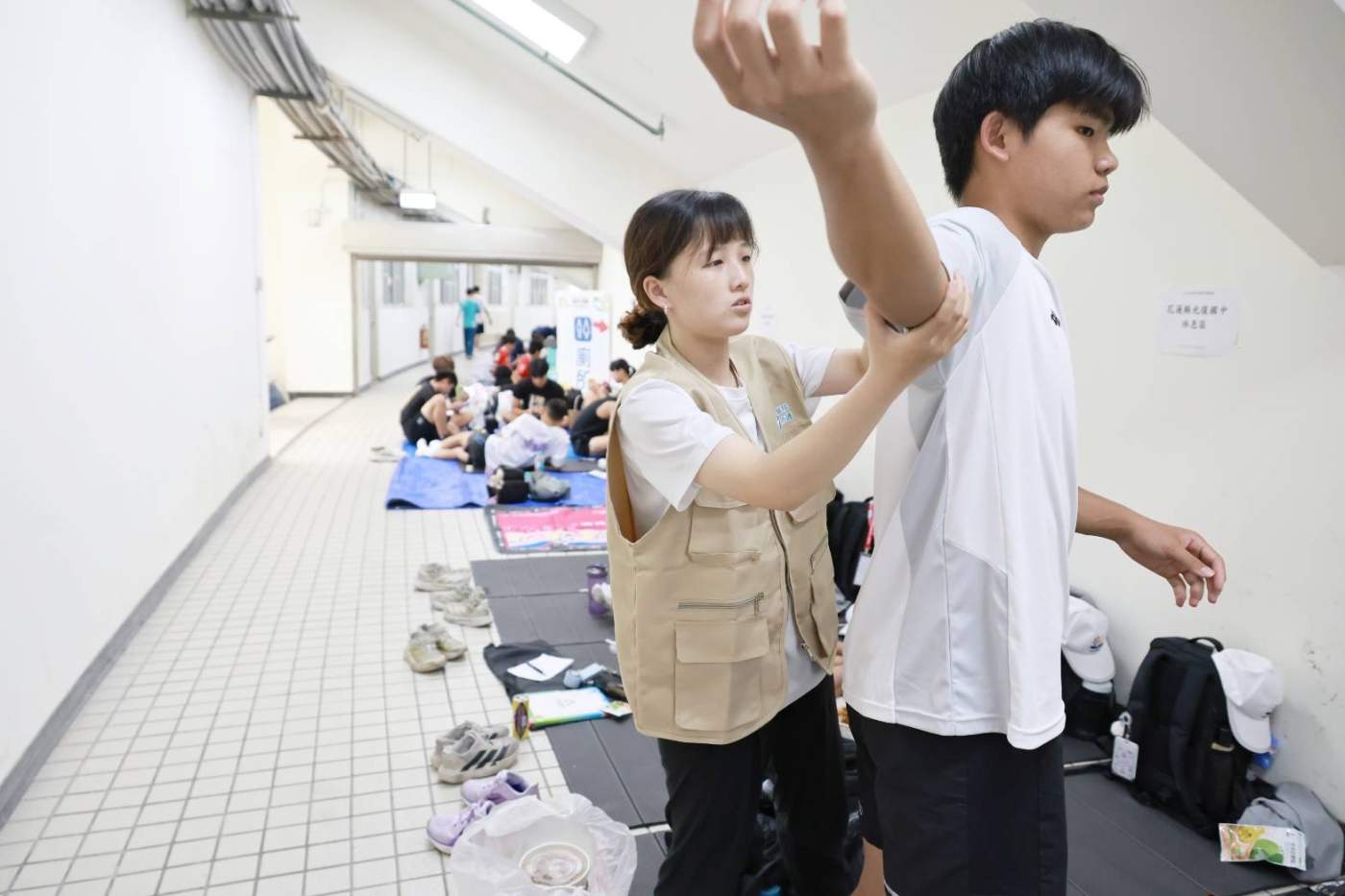 光復國中教練陳緯皓回顧,洪災過後,校內標槍器材僅存一支,五、六名選手只能趁課間10分鐘,在缺乏暖身與防護的情況下於泥地克難投擲,這導致具備天賦的田佳恩在賽前爆發手臂傷痛。門諾醫院啟動「跨縣市防護支援」,平時由在地物理治療師進駐校園調整動作,賽時則由外縣市專業防護員隨隊貼紮、監控肌肉狀態,成功讓田佳恩從無法發力的低谷重回巔峰。