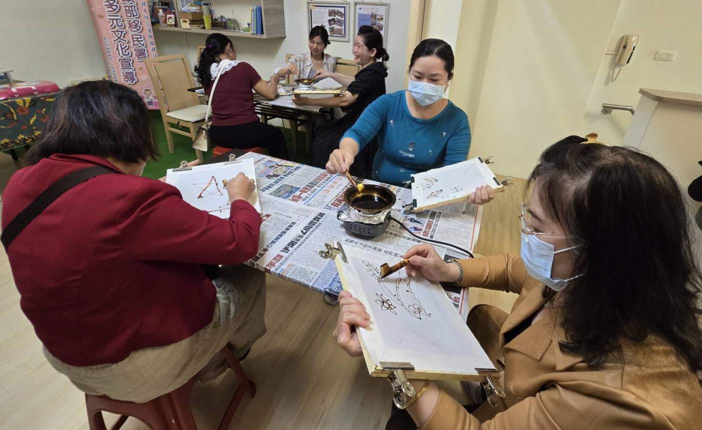 卡蒂妮日被譽為印尼的婦女節,傳統上女性會穿著正式服飾展現文化認同。卡蒂妮不僅是平權運動家,更在 19 世紀末便將印尼蠟染推向國際。講師張美君在活動中分享,蠟染(Batik)於 2009 年獲聯合國認證,是印尼最重要的文化標誌。學員在體驗過程中,從構圖、上蠟到染色,每一道工序都考驗耐心。來自越南的新住民小蓉感慨表示,完成一件作品的過程如同女性的人生,需要柔韌的力量與耐心去慢慢勾勒,這讓她更有自信面對在台的生活挑戰。