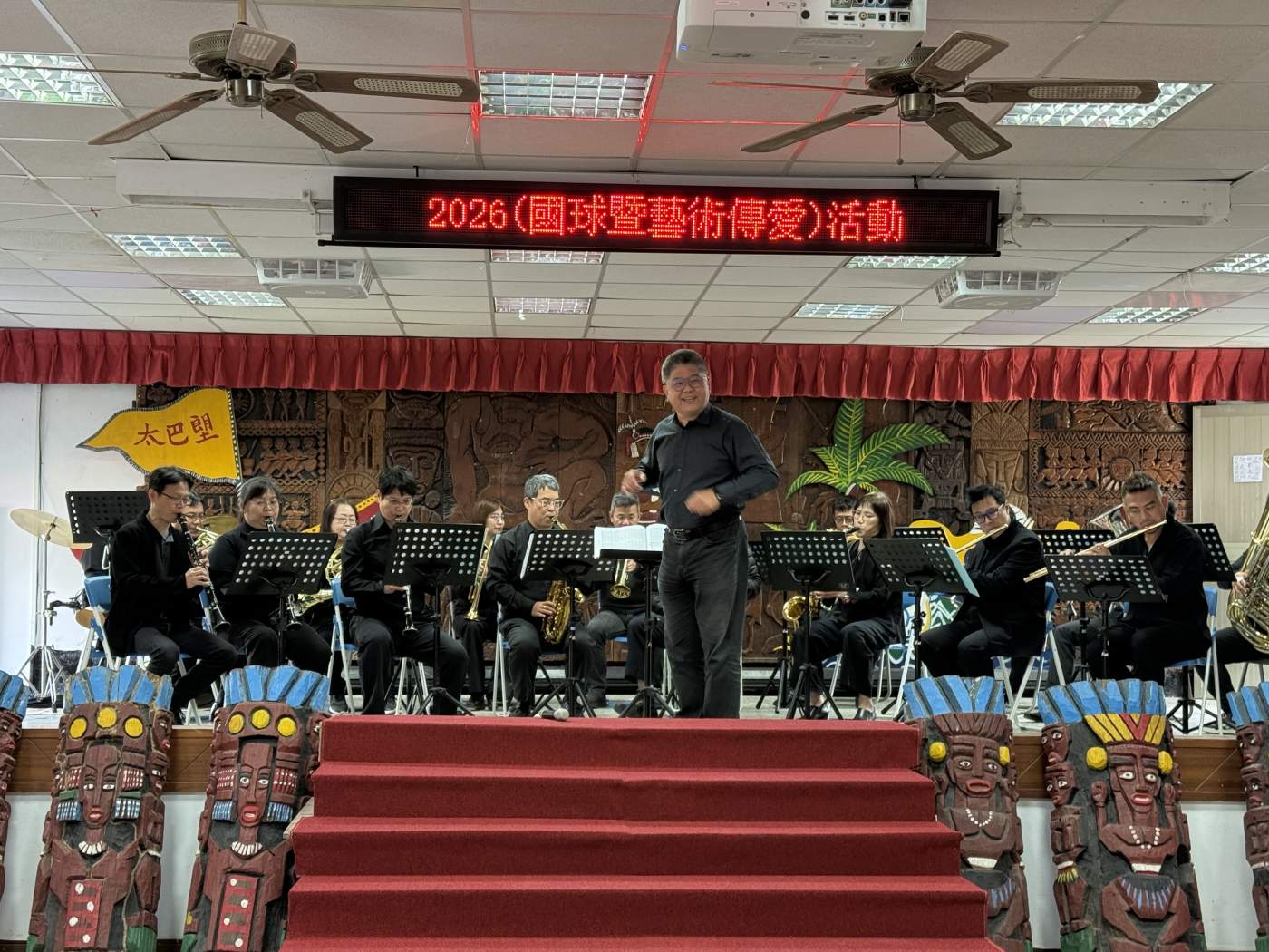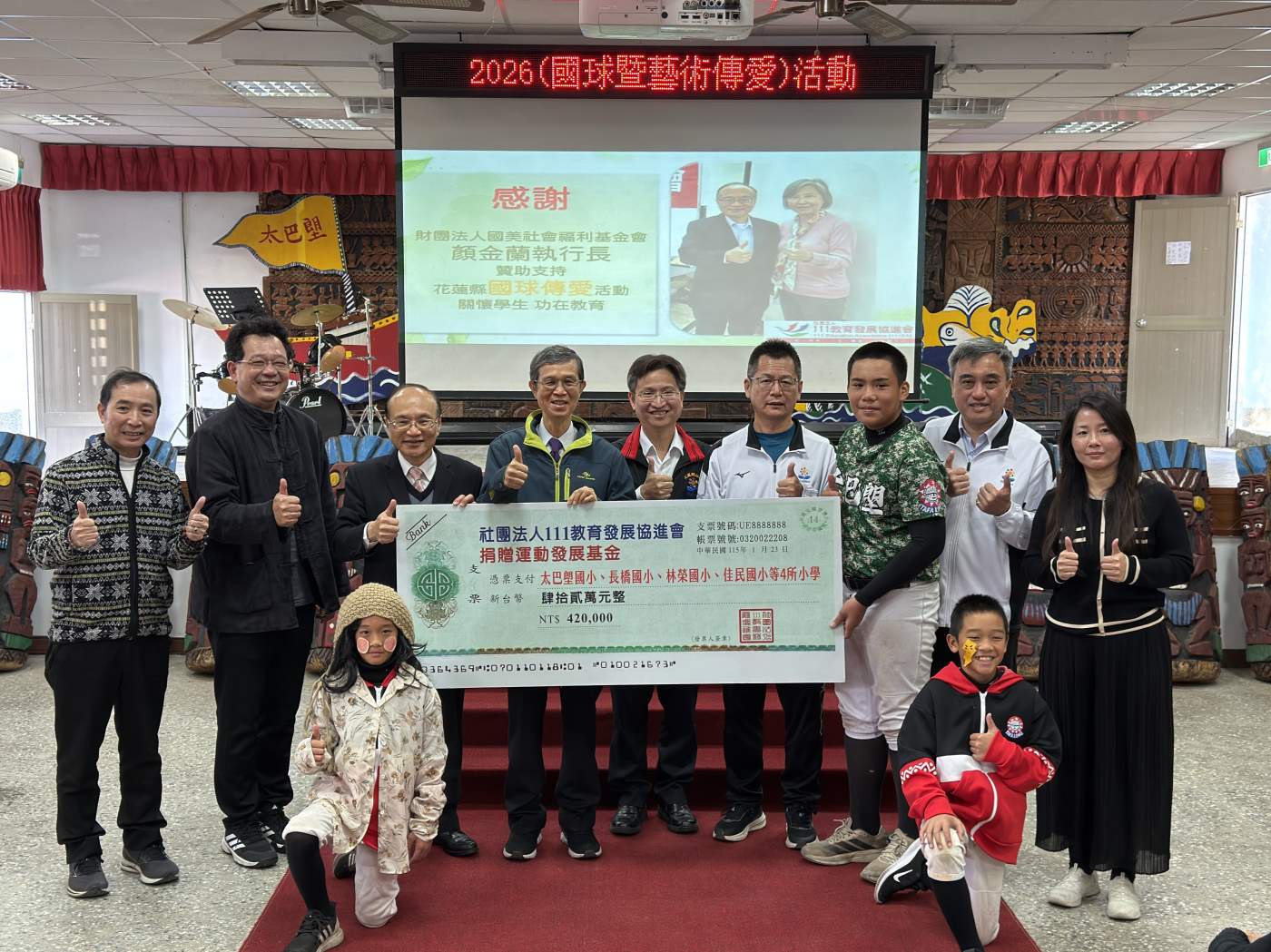 花蓮縣光復鄉太巴塱國小的操場今日上午迴盪著熱血與柔情交織的聲響,一邊是小球員在紅土上奔跑的吶喊,另一邊則是悠揚的管樂旋律。由社團法人 111 教育發展協進會與國美社會福利基金會、臺北市教師管樂團共同發起的「2026 國球暨藝術傳愛」活動,今日正式走進花蓮,不僅為偏鄉學校送上實質的球類發展基金,更透過專業樂團的演出,為後山的孩子們帶來一場心靈的藝術饗宴。